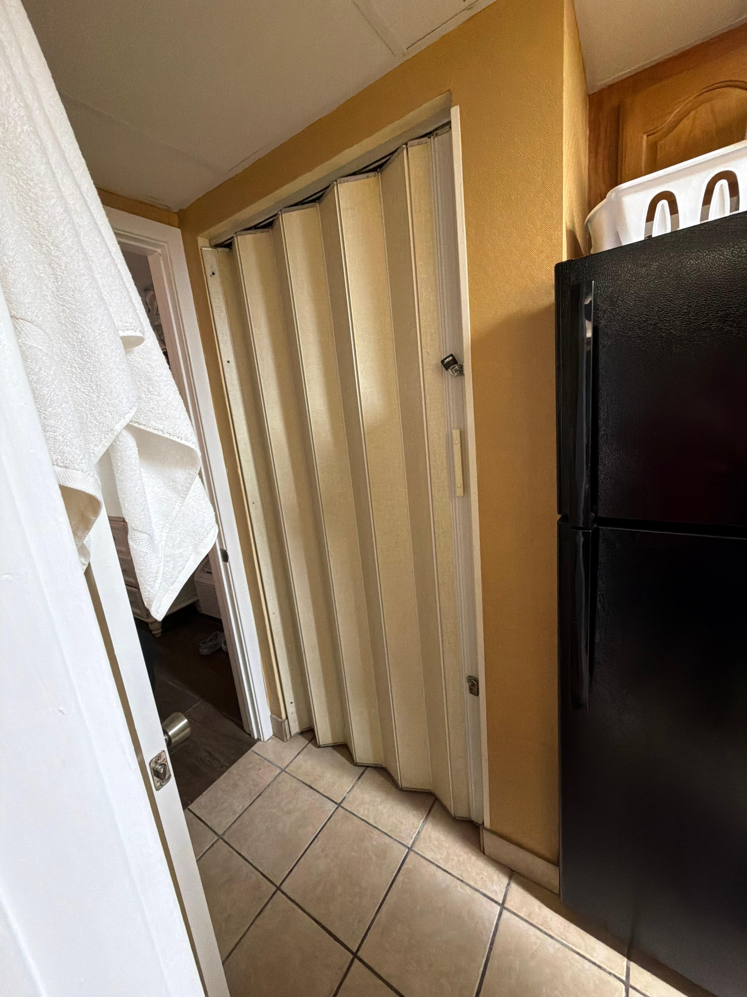 La habitación sucia oxidada en la puerta y clóset