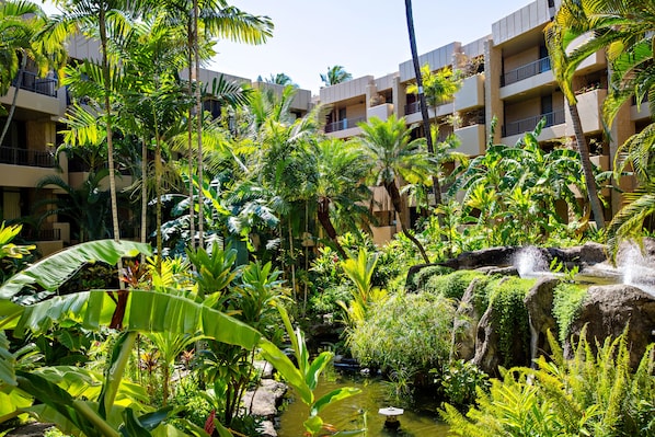 We were impressed with the kitchen, the comfort of the furniture, and the easy location north of Kaanapili. The first floor access was great but has the draw-backs (as noted by others) of noise from parking lot and garden/koi pond area. Most of the time, that was manageable but we did have one short night of the five we were there because of noise. Perhaps consider bringing earplugs? I suggested to the property manager that they provide intel in the welcome binder about location of laundry rooms on property, trash dumpsters, and even of the office where one gets a parking pass. A shortage of signs made exploration mandatory. Not a bad thing on its own, but not everyone is able to wander around for 15 minutes looking for something on a large site. Also, I knew enough to get the wi-fi SSID and password from the router, but not everyone will. That might be useful information for some guests too. Again, we really enjoyed our stay and found the unit lovely in many ways. The above are offered as friendly thoughts for enhancing the experience for others. Best wishes.