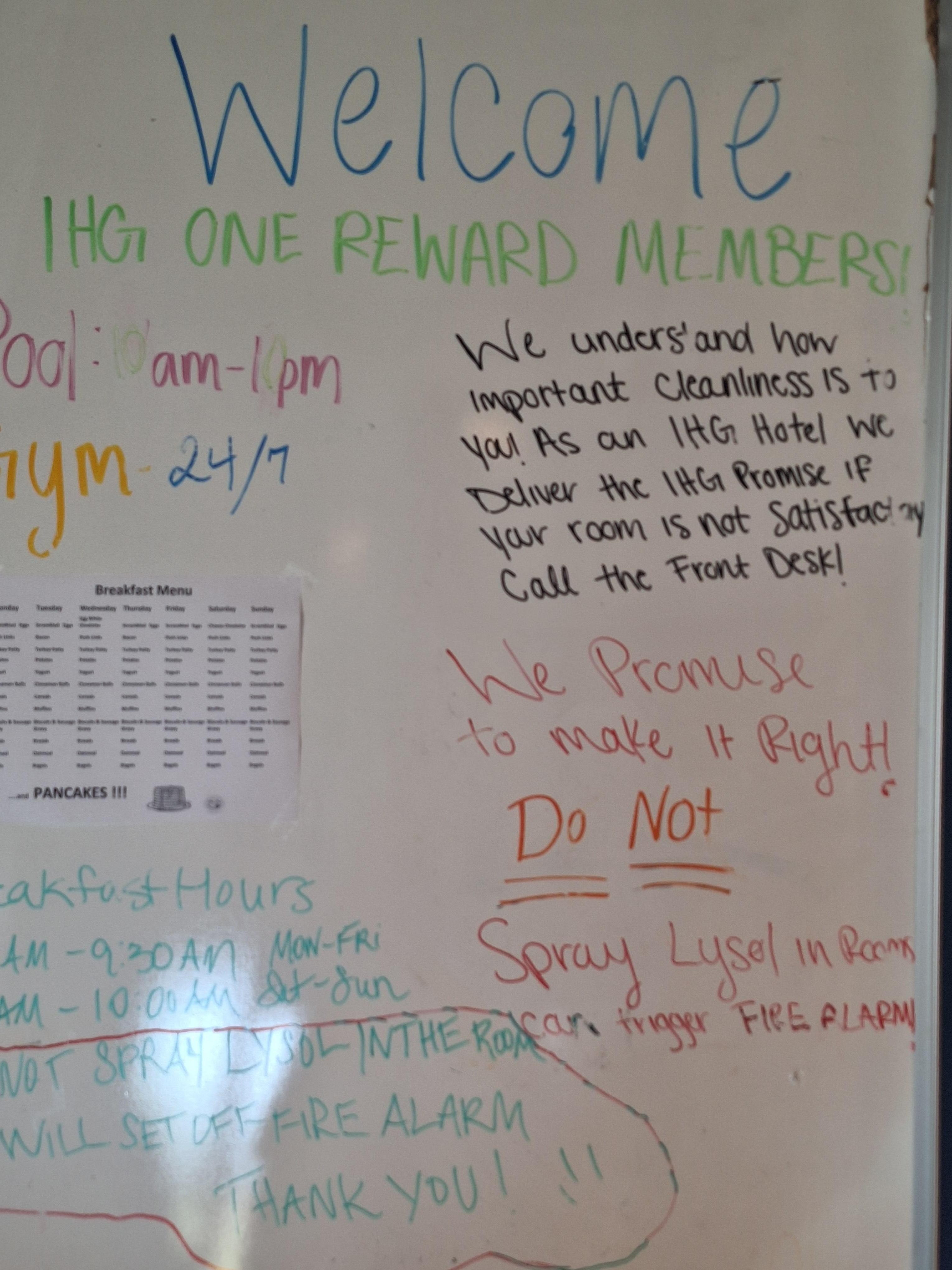 Clean, quiet, friendly staff, good breakfast, and great rates. Overall excellent experience!