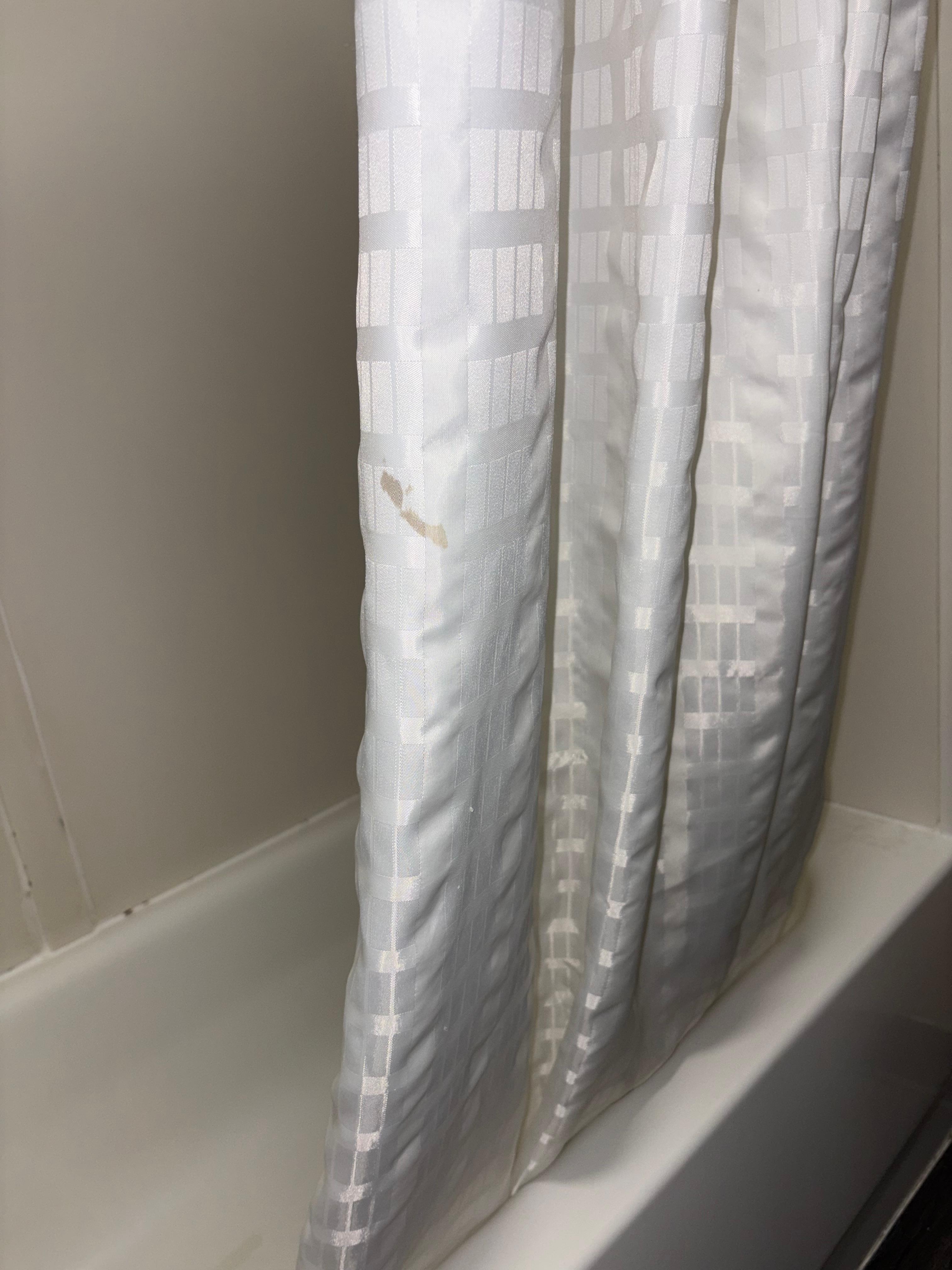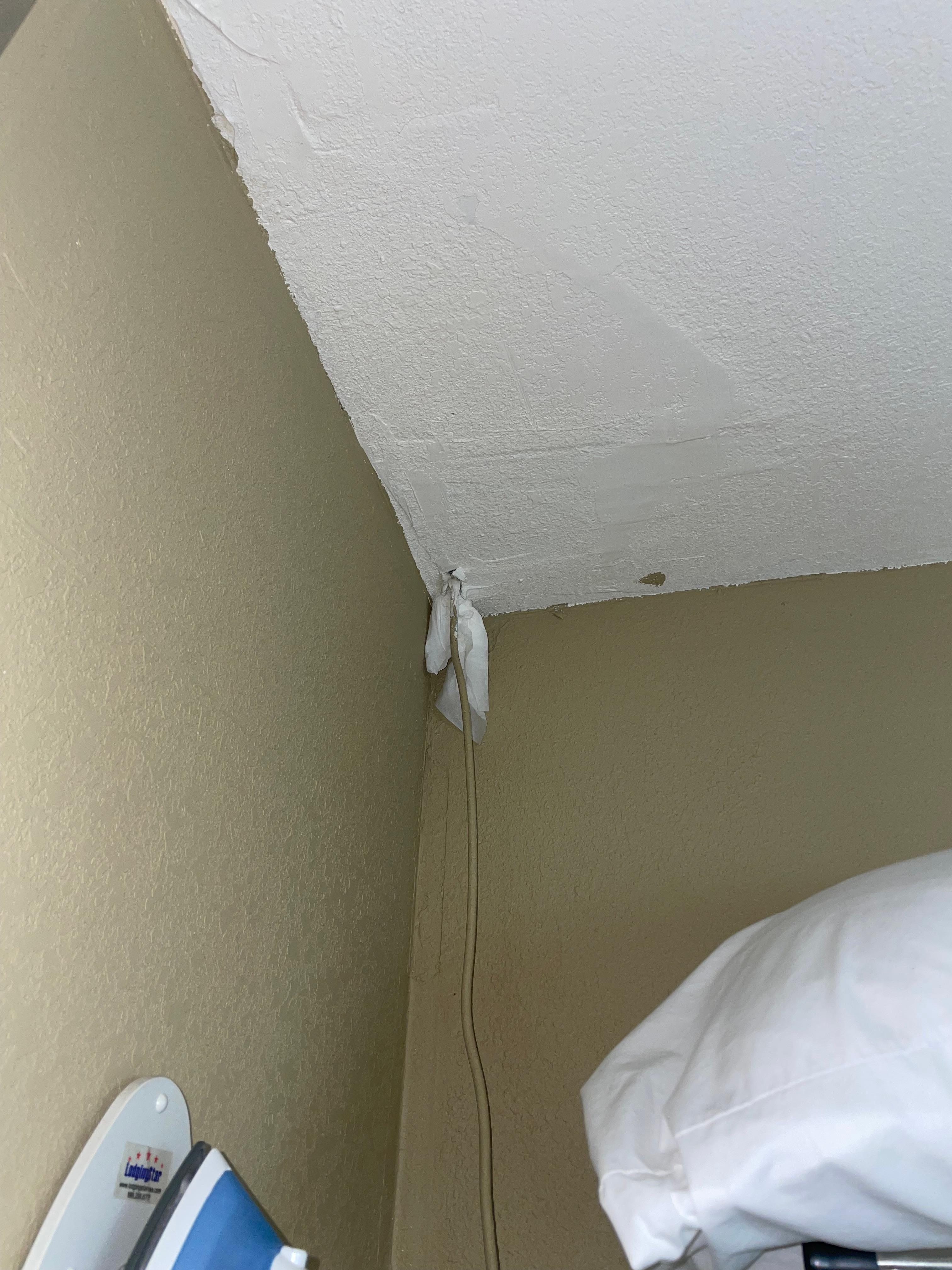 Stains on the window curtains, and on the shower curtains, the toilet seat was dirty never cleaned. There were stains on the pillowcases, stains on the walls, refrigerator and microwave had handprints and food all over them. There was a hole in the ceiling stuff with tissue. I would not recommend this hotel.