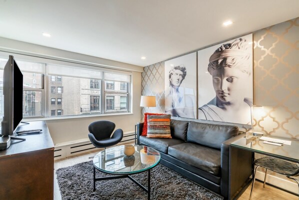 este departamento se encuentra en Manhattan, un área de Nueva York. Estación Grand Central Terminal y Puente de Brooklyn son lugares emblemáticos, y los turistas que quieran ir de compras pueden visitar Quinta Avenida y Times Square. ¿Quieres asistir a un evento o partido? Échale un vistazo a lo que sucede en Madison Square Garden o Radio City Music Hall (centro de entretenimientos). Visitar nuestra guía de viaje de Nueva York