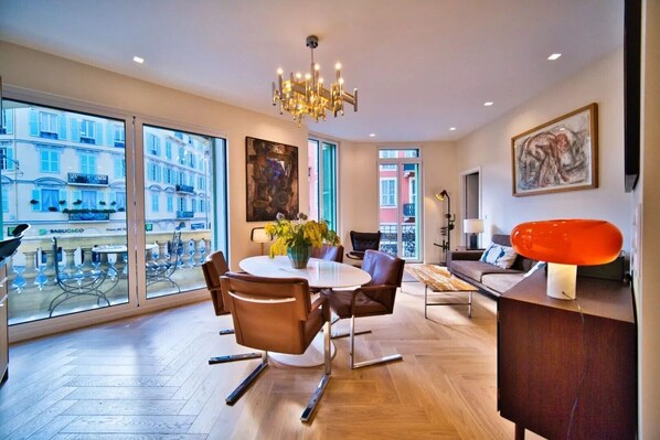 Fantastic property! Very close to shopping and restaurants. Short walk to Old Town (open air market), Promenade des Etats Unis, and multiple restaurants.The property is very clean and professionally decorated. The kitchen is stocked with anything one might need should you decide not to enjoy one of the many local restaurants. Additionally a great bar area for entertaining. A true gem!! Communication with property owner exceptional - both prior to arrival and during the stay. He was a great source of information/recommendations.We were in Nice for our son to compete in the Ironman World Championships. The property was perfect! An easy 15 minute walk to the race venue. The Alpes-Maritimes were a short drive away with many charming villages perched on the mountainside. A car is not necessary as the property is very close to the Ligne D'Azur railway (goes to the airport).We highly recommend this property!! We will definitely rebook on return trips.