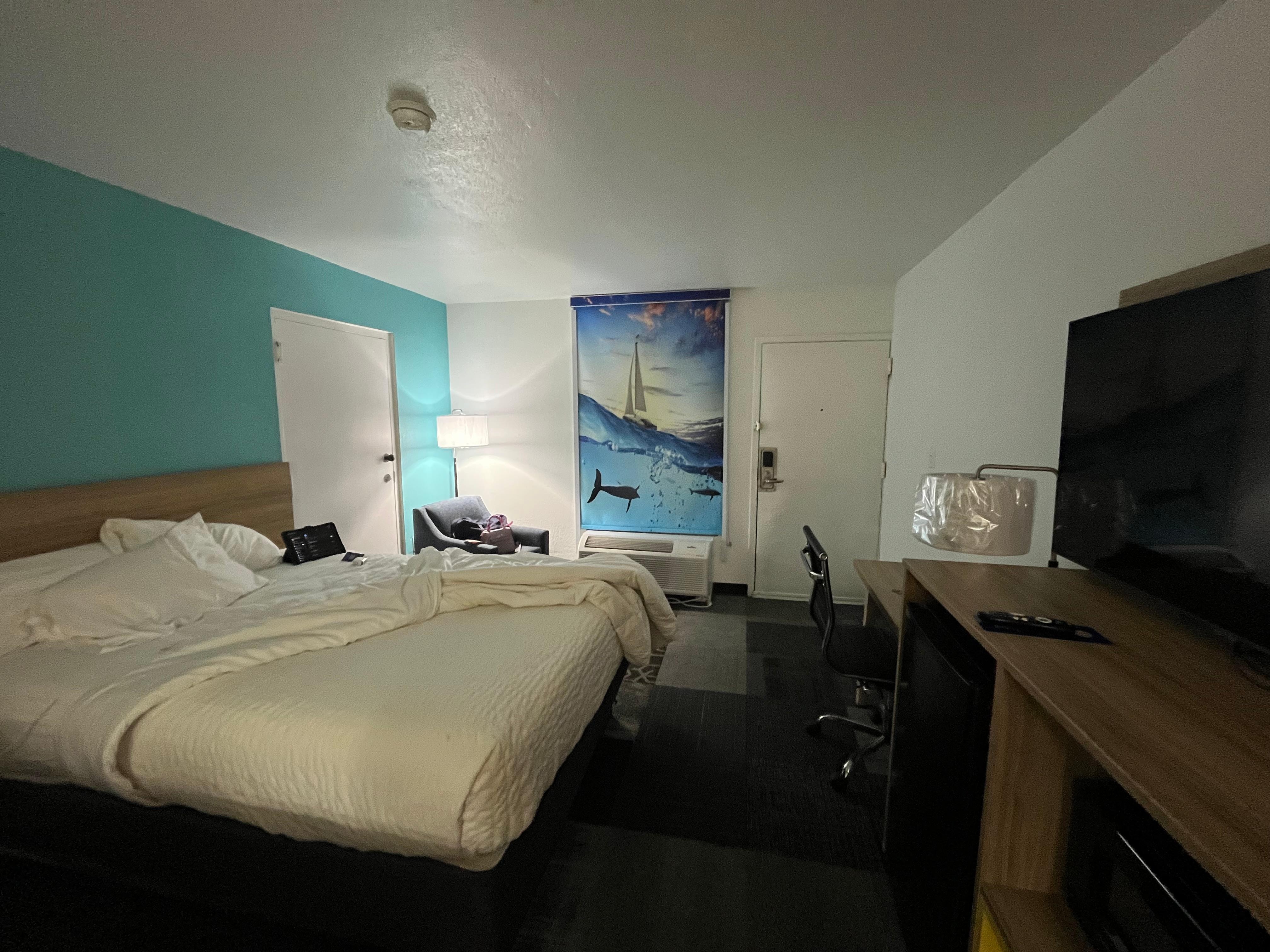 Very nice stay. Room was newly renovated and had everything you need to stay for a short or long time. Super clean and the staff was very professional, friendly and accommodating. Good continental free breakfast and very dog or cat friendly just with a very small fee!
