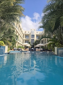 Sí, hay piscina en la propiedad.