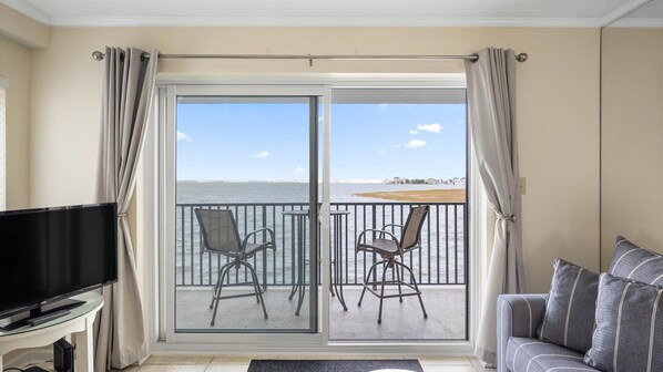 Condominio a orillas del agua con cocina y balcón