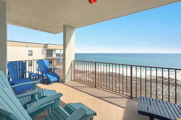 Beautiful condo! Corner unit has extra balcony at front of building for afternoon sun. Chairs/foot rests on balconies were very comfy.