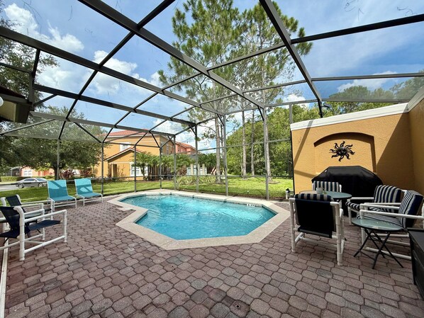 Sí, hay piscina en la propiedad.