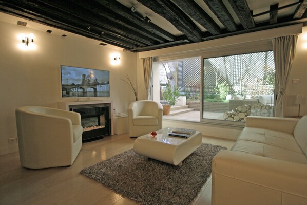 This is the coolest apartment I’ve ever rented. It’s located on a quiet street a stone’s throw from Notre Dame, but is insulated from the noise and crowds. Everything is extremely well appointed: laundry, dishes, appliances, deep soaking tub with plenty of hot water, elevator, towels, dark bedroom for sleeping in, Champagne glasses, handy Paris/France tourist books and owners’ excellent shopping and dining recommendations, closet space, comfortable bed, and the glorious terrace, which makes you feel like you aren’t in the city. You’ll be able to see Notre Dame at all times of day and night. Everything is walkable and the RER train to CDG is nearby. My friends in hotels were all very jealous. Communications and directions were flawless. I stayed 8 nights and it was so hard to leave. If you need a medicinal dose of Paris, this apartment will do the trick.