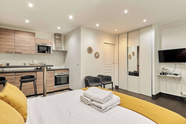 En Charming Studio Center of Paris Le Marais, todas las habitaciones cuentan con atenciones como áreas de comedor independientes. Además, brindan servicios como wifi gratis y oficinas.