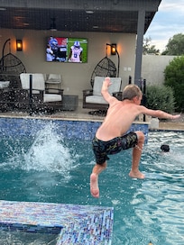 Sí, hay piscina en la propiedad.