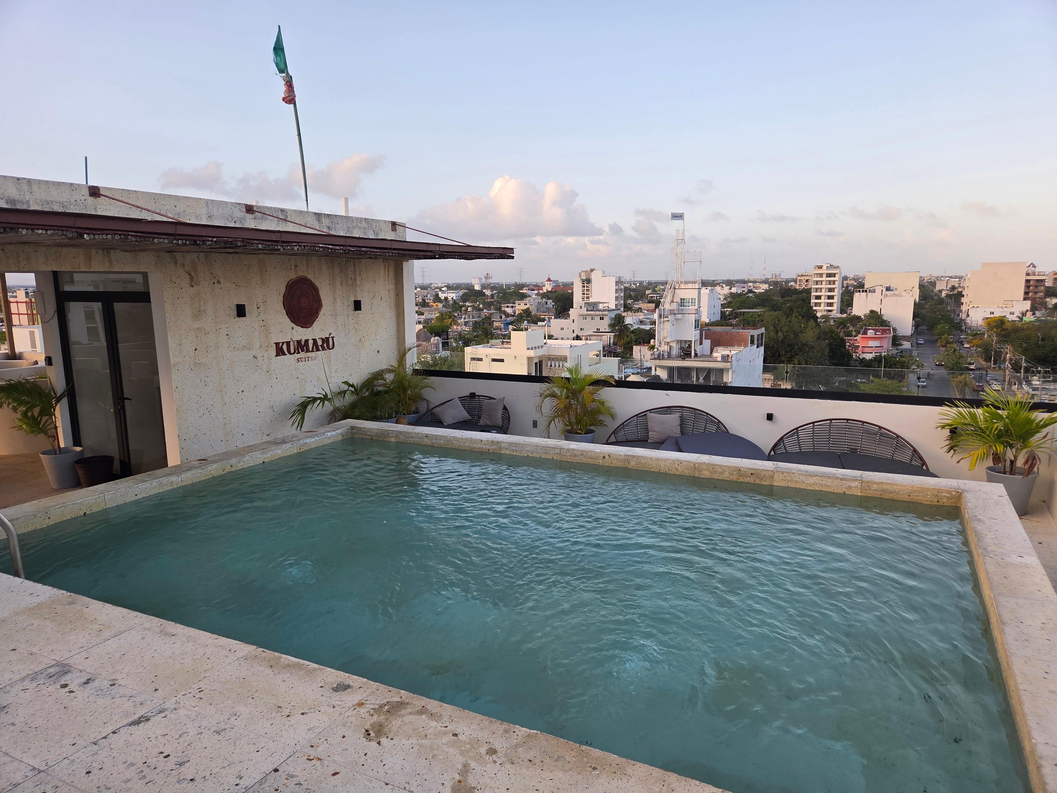 Estube mas de 2 semanas en Kumaru suites, esta muy cerca de todo, la Quinta avenida a 3minutos, un supermercado Chedraui a 7 minutos, restaurantes al lado, fruterías y tiendas de abarrotes ee cada lado también. Playas a 10,15,30 minutos, la mas cerca era la playa 38, en la calle 38. La piscina del Kumaru es muy tranquila siempre está limpia, el señor que trabaja ahí Milton se ocupa muy bien del mantenimiento del lugar siempre esta todo limpio. Muy seguro siempre hay alguien de seguridad en la noche de las 7 a las 7 de la mañana. Este lugar es muy tranquilo y el personal muy amable.