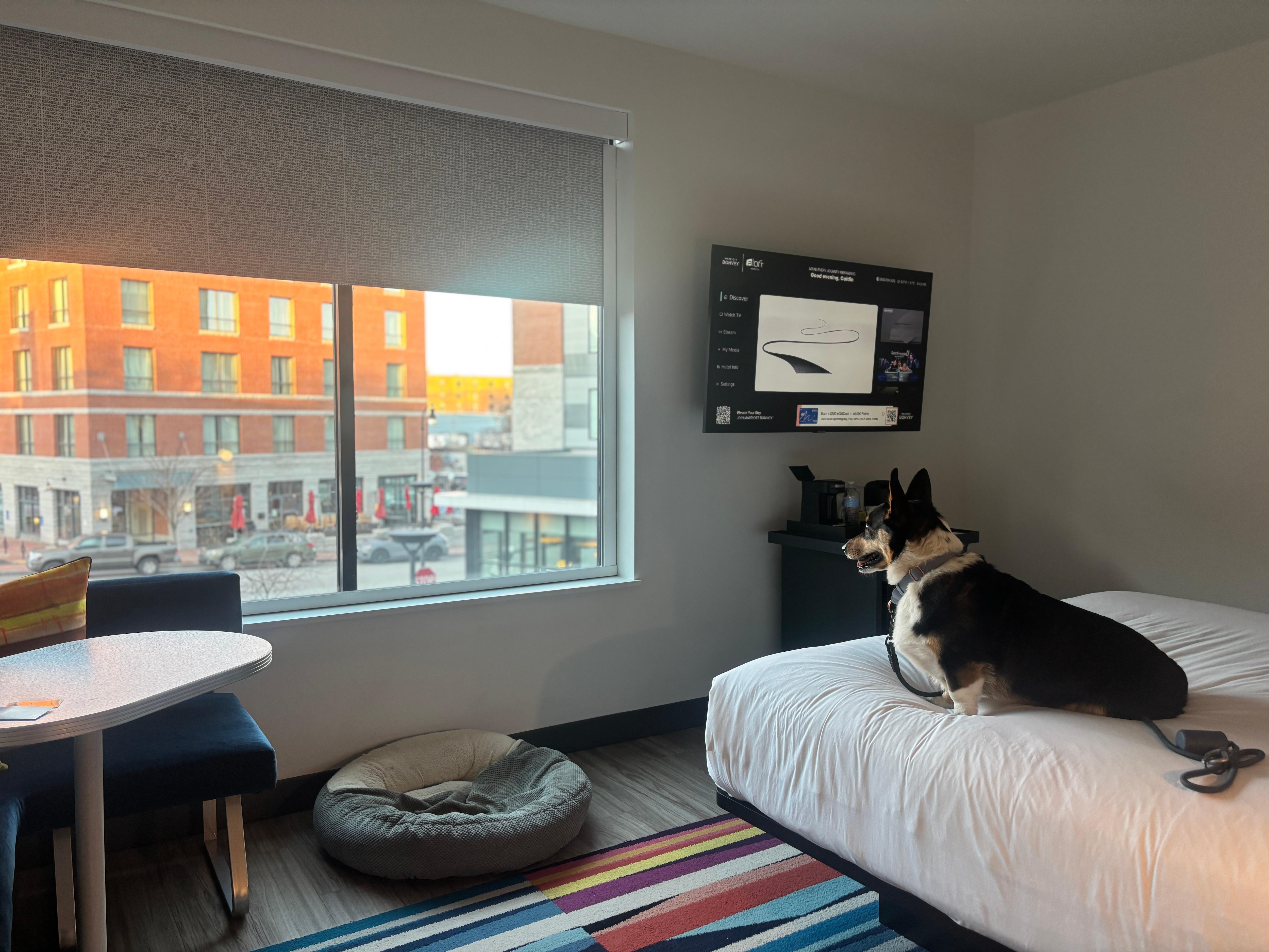 Easy and friendly check in. Took my corgi Cosmo and he was over the moon to greet the staff. Hotel Parking was full when I arrived but they gave me a few other options and one was MUCH cheaper.