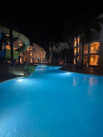 Sí, en la propiedad hay 6 piscinas al aire libre y una piscina para niños. Se puede acceder de 09:00 a 19:00.