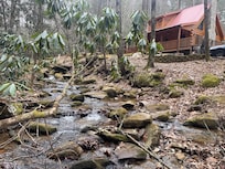 Stay in a Real Log Cabin! - Private Creekside Cozy Log Cabin with Hot Tub & Wifi