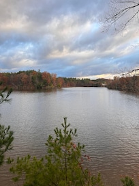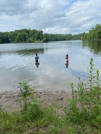 This is a very special place, inside and out. I went solo, with my dog, and this was exactly the restful retreat I was looking for. The inside space is thoughtfully designed, with awesome art throughout, and the glass doors facing the lake are perfection. The creature comforts of the excellent heating systems, laundry, full kitchen, great wifi, etc were all appreciated. In the kitchen, there was even some honey from the owner’s beehives and dried herbs from their garden. Outdoors, there are several really special places to sit and experience the surroundings—my favorite was the lounge settee tucked into a little nook amongst the foliage, right next to the water’s edge. This is a very special place, on very special land, that I hope to return to.