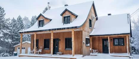 Large modern and comfortable cottage with private hot tub and wood stove.