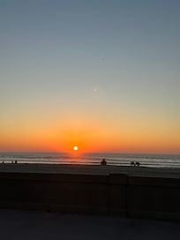 Amazing location almost directly on the best part of Mission Beach. Location cannot be beat with short walk to restaurants, a few beach oriented shops, a small (super expensive) convenience/ grocery store. Enjoyed the walk along the miles long boardwalk area and the beach was uncrowded and clean at this time of year.There is also a small park with picnic areas and public bathrooms on the boardwalk. The unit itself has small bedrooms except the spacious master with double closet. Plenty of hangers and wire drawer unit in the closet. The bunk room was very tight but also very clean and nice. There is a small washer dryer in the unit with laundry soap provided. The two bathrooms are good, with some shampoo, conditioner and hand soap. Number of towels was very good; beach towels and beach chairs / toys also provided. We did encounter a few maintenance issues and these were addressed well. There is a TV in the living room area and the master bedroom with streaming service connection. The kitchen had plenty of pots, pans and dishes.Coffee, basic cooking spices provided. Nice shared outdoor area. Propane grill was great. Comfy beds. Downside of this unit is parking. The garage is very tiny, compact car only. Other parking is about two blocks away, restricted on some days/times. Annoying to worry about our nice car in public parking overnight. Restricted ability to explore the surrounding areas. Beach is the real draw here but leave car at home.