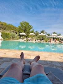 Sí, en la propiedad hay 3 piscinas al aire libre. La piscina está cerrada por temporada todos los años desde el 13 de octubre hasta el 25 de abril.