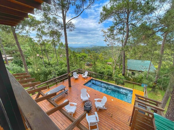Escápate al Bosque · Villa Completa · Piscina · BBQ · Hasta 12 Huéspedes se encuentra en Jarabacoa. Letrero de Jarabacoa y Las Pirámides son lugares emblemáticos locales, y la belleza natural del área puede apreciarse en Parque Ecológico La Confluencia y Parque Nacional Valle Nuevo. Visitar nuestra guía de viaje de Jarabacoa