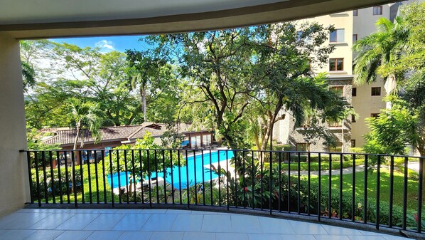 Sí, hay piscina en la propiedad.