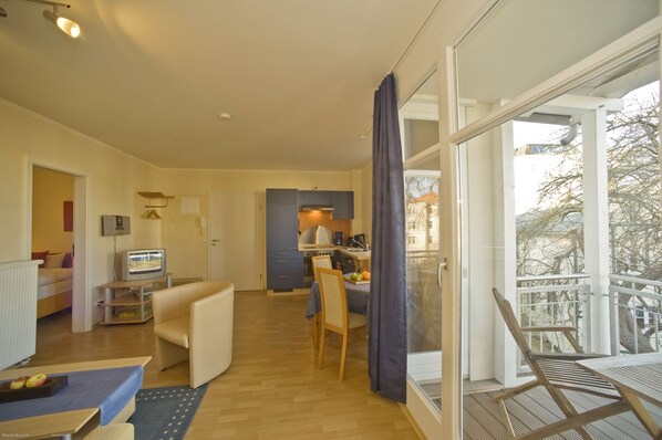 Panorama apartment - with sea view and balcony, use of swimming pool and sauna -