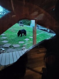 The things you need to know before booking: This cabin is located 1/2 way up the mountain with very steep, hairpin curves. I absolutely would not stay here in the winter or arrive after dark. The cabin "extras" are a little sparse. No cream or sugar for coffee, only 3 dishwasher pods, two bath towels per bathroom, etc. I assume this is because people steal all the extras. So come prepared. The good stuff: This cabin has the best view out of all the houses in the neighborhood. The host was extremely responsive and helpful. My older kids all adored the game room upstairs and my toddler spent many happy hours with grandad on the porch swing. My kids loved seeing bears multiple times though it did get a little scary when a bear touched our van and knocked over a light pull. We were apprehensive about letting the kids go out in the yard unless necessary. There were plenty of beds and bathroom for everyone.
