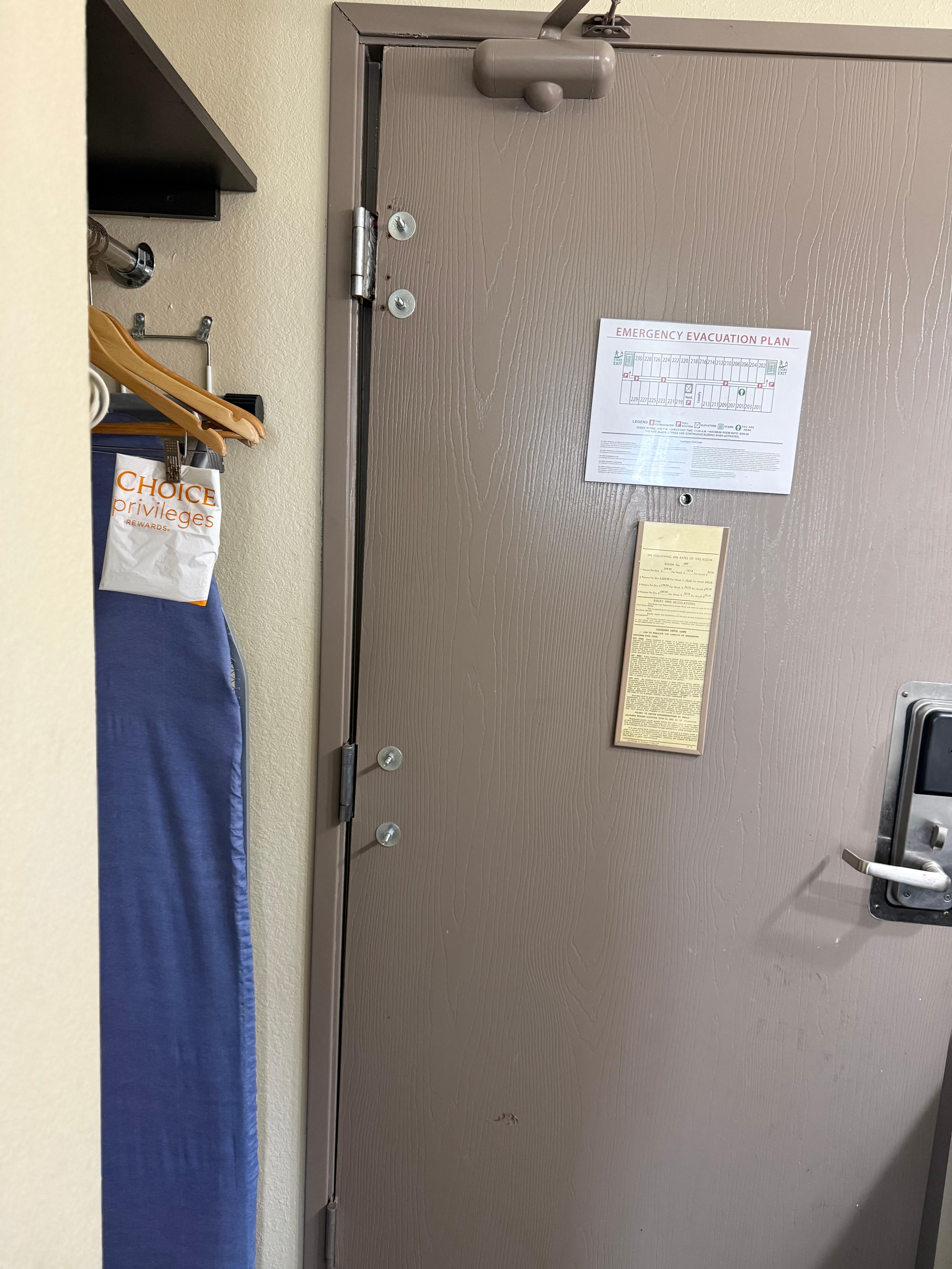 Rooms were disgusting, not clean. Questionable substance on the comforter called manager and they took the sheets off the bed to go and wash them instead of just giving us a whole clean new set. The door to the room also looked like it had been kicked in and broke it off the hinges and then someone tried to fix it.