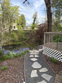 What initially attracted us to this cottage was the deck that overlooks the creek. However, I was pleasantly surprised by how charming and comfortable the cottage turned out to be. There were so many thoughtful touches that enhanced our experience. As for cleanliness, it was immaculate! The hardwood floors sparkled, the shower was spotless, and the kitchen was equipped with every cooking gadget you might need, including a variety of spices.We spent a lot of time relaxing outside, and when it rained, we retreated to the sunroom. We opened the doors and still enjoy the ambiance, just like sitting on the deck, but sheltered from the weather.The neighborhood is a delightful mix of homes that have largely been restored to their original quirkiness, or a new take on the old. It covers just three blocks, making it perfect for evening strolls. We also went through the park with its tree-lined trails, crossed the creek bridge, and enjoyed a circular route through town.The historic downtown area is only a block away, so restaurants are practically at your doorstep. The food options are diverse, ranging from creekside dining at the Tea Leaf—where their breakfast is to die for—to the Noble Fox, which has the cozy ambiance of an English pub. Their roasted Brussels sprouts are absolutely incredible! Even the food truck court! Situated next to the creek, comfy rocking chairs, well-manicured grass, a fire pit, and great food!Would we go back? We’ve already booked our next two stays!