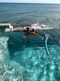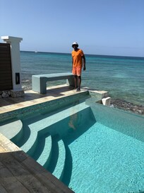 Location! Location! Location! This house is located on the beach and within walking distance to restaurants and a grocery store. The view from the pool was amazing and we were able to open the patio sliding doors for a full ocean breeze while in the living room. There are mini-split air conditioners in every bedroom. The living room has a huge fan that will keep everyone cool. The only area that can get toasty is the small dining area. We hired a private chef (highly recommend) and sat at the table only one night. We ended up sweating through dinner, but the food was worth it. We've stayed in different houses in a multitude of islands and this was our favorite. The only thing that would make this house even more amazing is a mini-split in the living room/dining area. Will definitely be back!