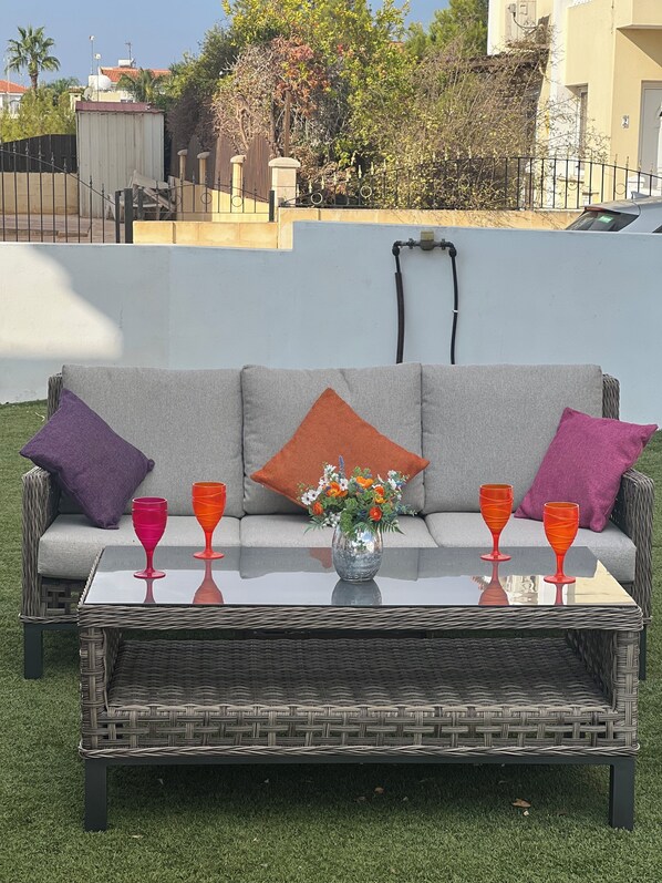 We had a wonderful stay at this villa! The location was ideal – quiet and peaceful, yet close enough to everything we needed. a car is recommended, however there is a bus stop on the main road with frequent buses to Ayia Napa and further afield. The villa itself was spotless and very well maintained, had all the facilities you could ask for. The pool was fabulous, pretty big and cleaned twice a week, with plenty of sunbeds to relax on, and we loved the outdoor space. Inside, the kitchen was fantastic – all modern appliances including a new cooker, oven, dishwasher, and washing machine, which made things so convenient. The WiFi was excellent and the TV had all the channels you could possibly want. Overall, it was the perfect place for a relaxing holiday, and we would definitely love to return!