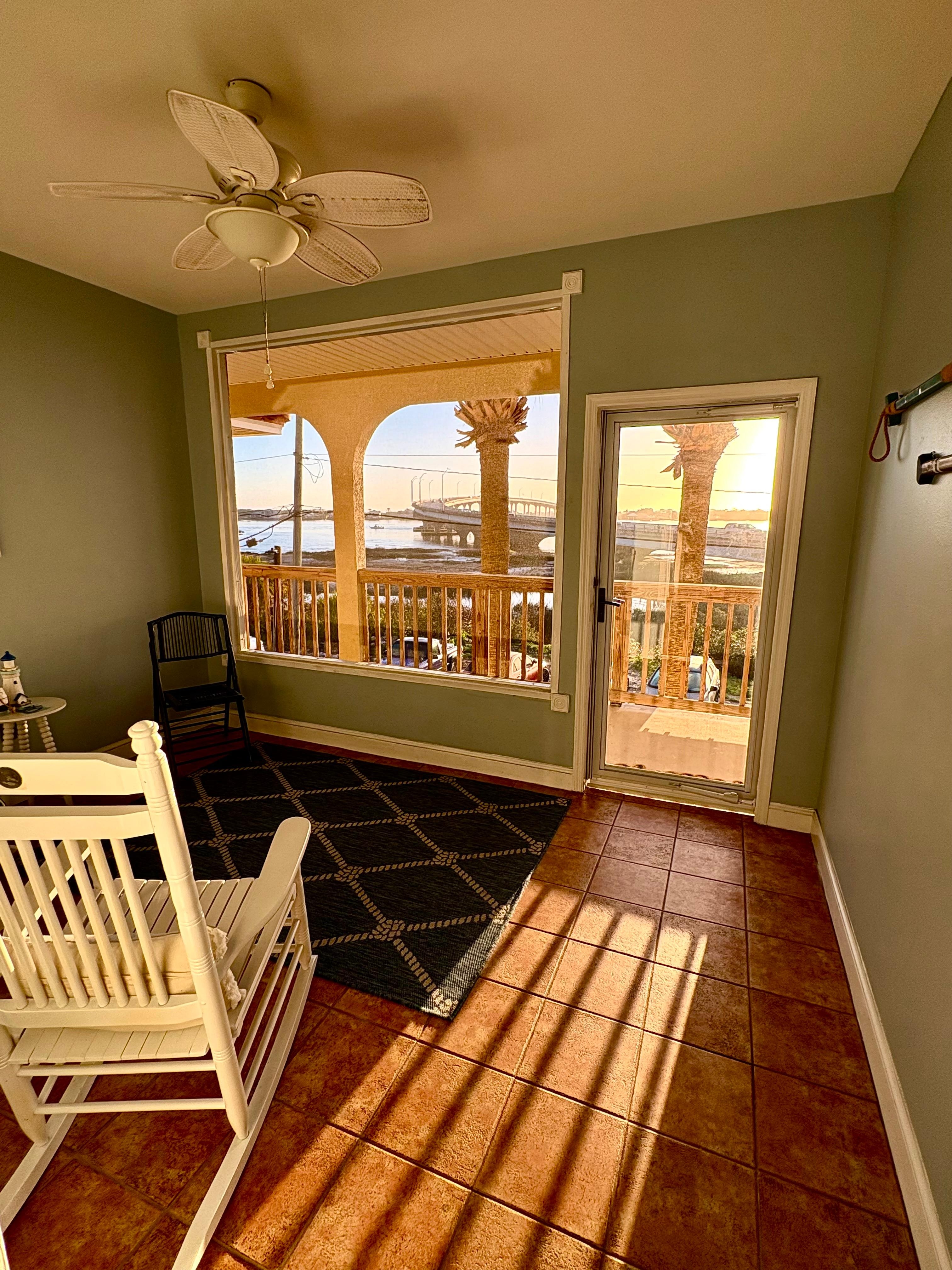 My unit had a front screened porch and a balcony out back. Best deal in the St Augustine area bar none! Available by water too. So much more than a hotel room. Excellent competitive rates. I have been here many times and love it always.