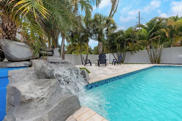 After having to make a last minute location change due to the hurricane, we stumbled on this property! We are so glad we did! It’s about a 5 minute drive from the beautiful beach at Indian Shores and 10 minutes to Indian Rocks. But we didn’t HAVE to leave for a good time! The houses open floor plan left us all feeling like we had tons of room! The pool and outdoor fire pit and bags game were so much fun! They had a shed full of beach supplies for us too! They supplied paper goods, dishwasher soap, body soap, shampoo/conditioner, and more! And not like 1 roll or one dishwasher tablet, like all other condo properties we have stayed at! The house was immaculately clean and the managers were timely and so nice!! We would definitely stay here again!
