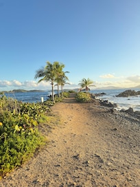 Overall our stay at Three Palms was great. It was my wife, myself & our two children (13 & 11). The views were spectacular and the location was perfect. Sapphire beach was beautiful and having resort style amenities such as 3 restaurants on the beach and a coffee shop made things easy. The owners sent a list with many helpful tips & recommendations which we utilized. Restaurants - The Sapphire Beach Bar & Paradise Pie at Sapphire were both quick with the food which was good and affordable. We also at at Sea Salt & Caribbean Fish Market, both of which had beautiful views, great service, delicious food and drinks. The only issue is that cruise ships send people to Sapphire beach, so it was VERY crowded most days. On the day we left, it was empty and quite enjoyable. The condo itself was clean & the owners do a nice job of making you feel welcome. It was probably a little too tight for the age of our kids who slept on the pullout couch, but we made it work.