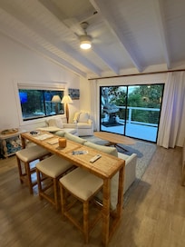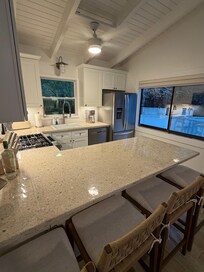 Hostess was super responsive and quick. Bedroom with washer the mattress needs updating, pillows are not great. When we arrived the patio door was open and the lock was broken so that was quite concerning but they did get it secured the next day for us with a wooden dowel. Doors and windows need updating as they are very hard to slide and locks are very very hard to make function. Driveway has a huge chunk of concrete out of it and the angle coming in is very steep so that was challenging. The house was clean and cute. Pool was nice to have and we just used the beach chairs provided as there are no pool chairs. Kitchen has plenty of plates and utensils. The house is located on the northside of the island so if you are coming in later grab your groceries before you head up there as there is nothing open or close if you don’t want to drive those roads in the dark. This side of the island is much quieter which ended up being great but you are away from pretty much everything.