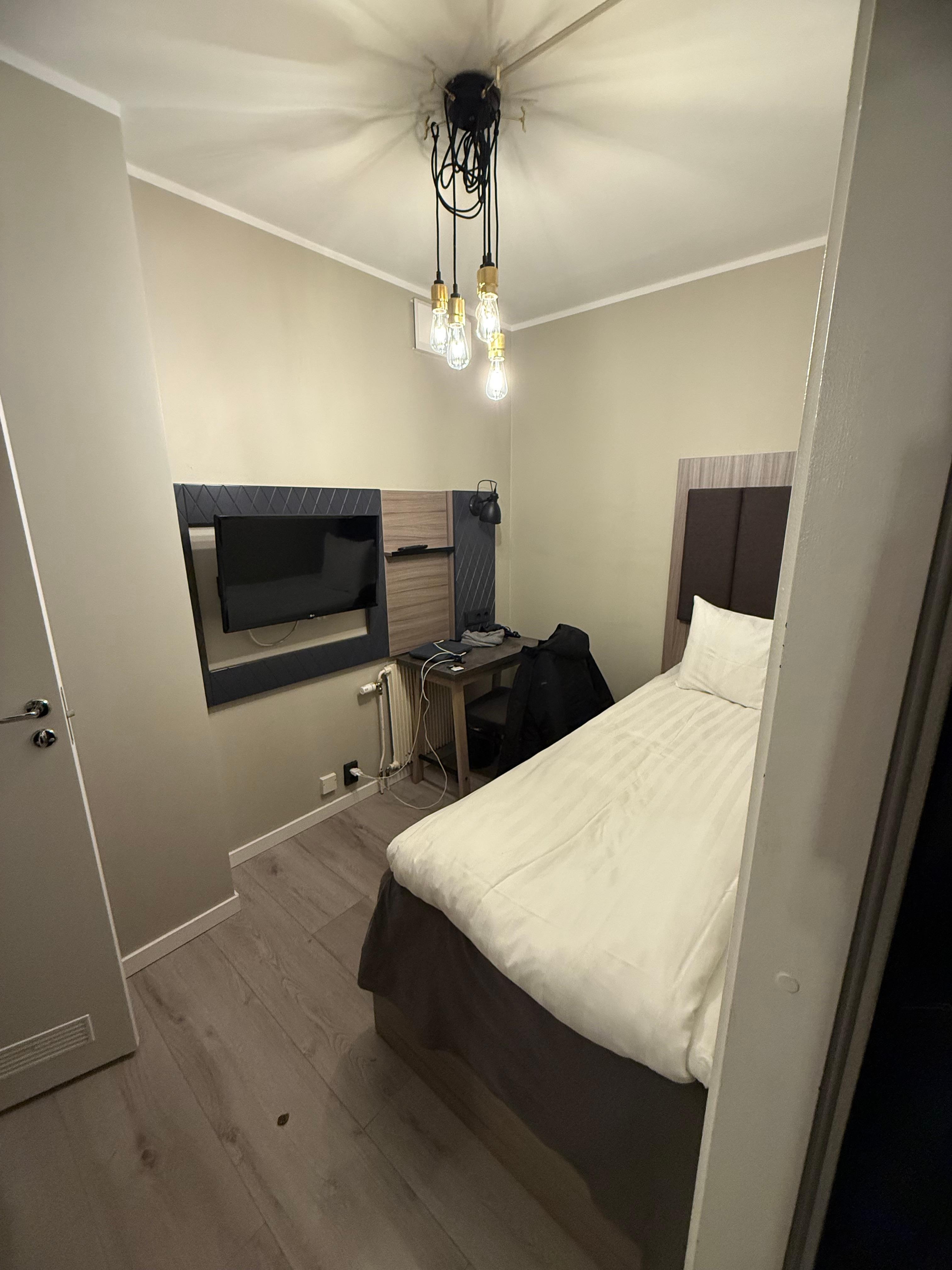 La habitación triple no es muy espaciosa pero suficiente. Las camas cómodas. La calefacción alta. El baño justo pero funcional. El personal amable. El desayuno bueno. En conjunto agradable.