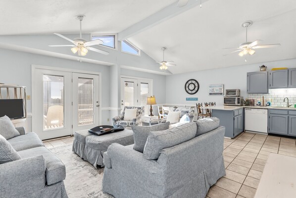 Large and roomy house across from the beach with WiFi, W/D, central AC, and deck
