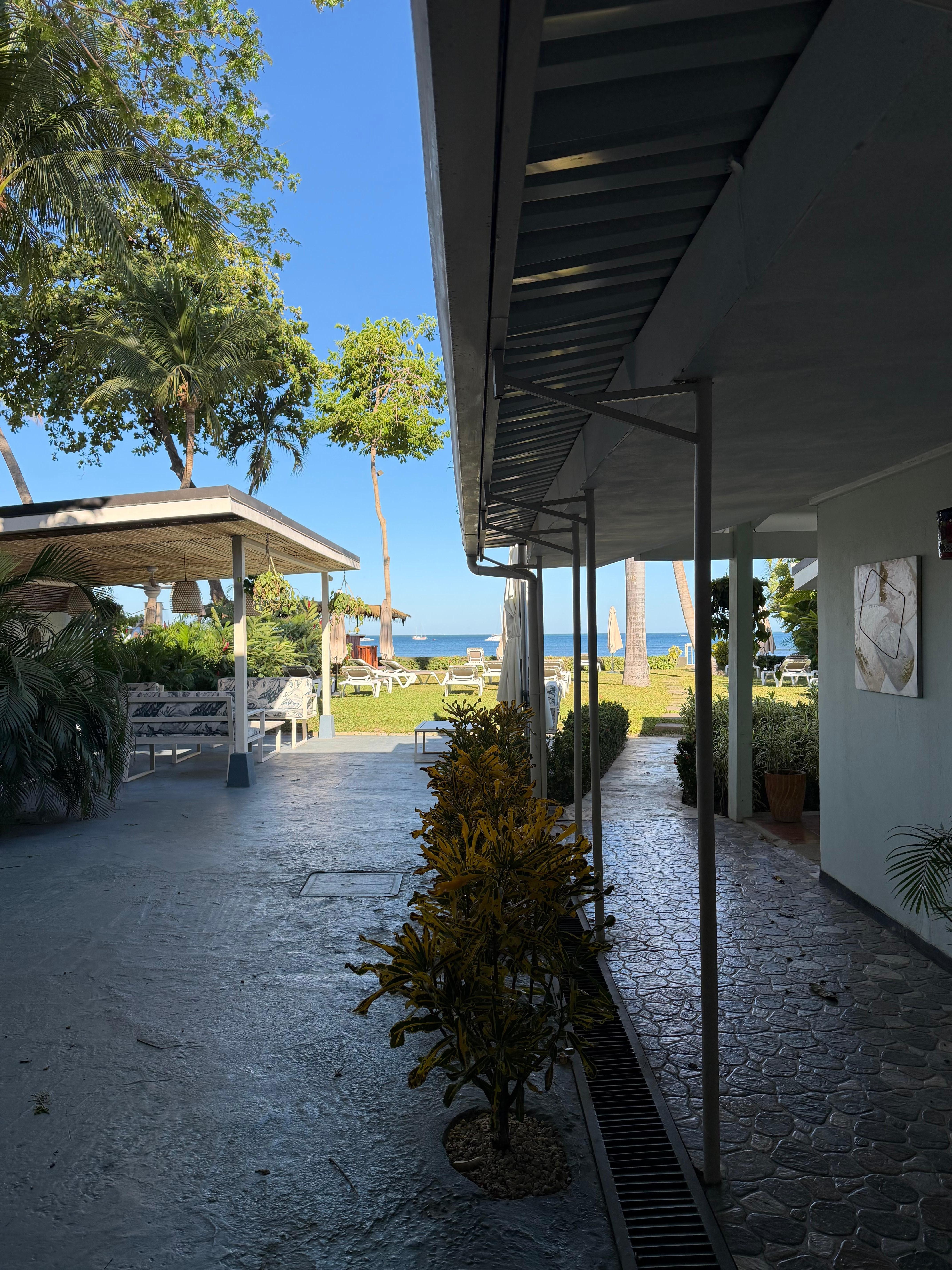 Pamela and Jaqueline were extremely accommodating. The grounds are really nice. This hotel is owned by the fancy resort next door (Tamarindo Diría) and the even fancier one across the street but we loved the simplicity of our hotel. The breakfast buffet is included and it’s superb. It’s located at the bigger resort across the street. You are allowed to use the pool since our hotel didn’t have one. One of the employees said our hotel was like “the little brother” of the big fancy ones.The hotel is not fancy. There’s no lobby, just a little check in desk.