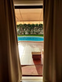 Sí, hay piscina en la propiedad.