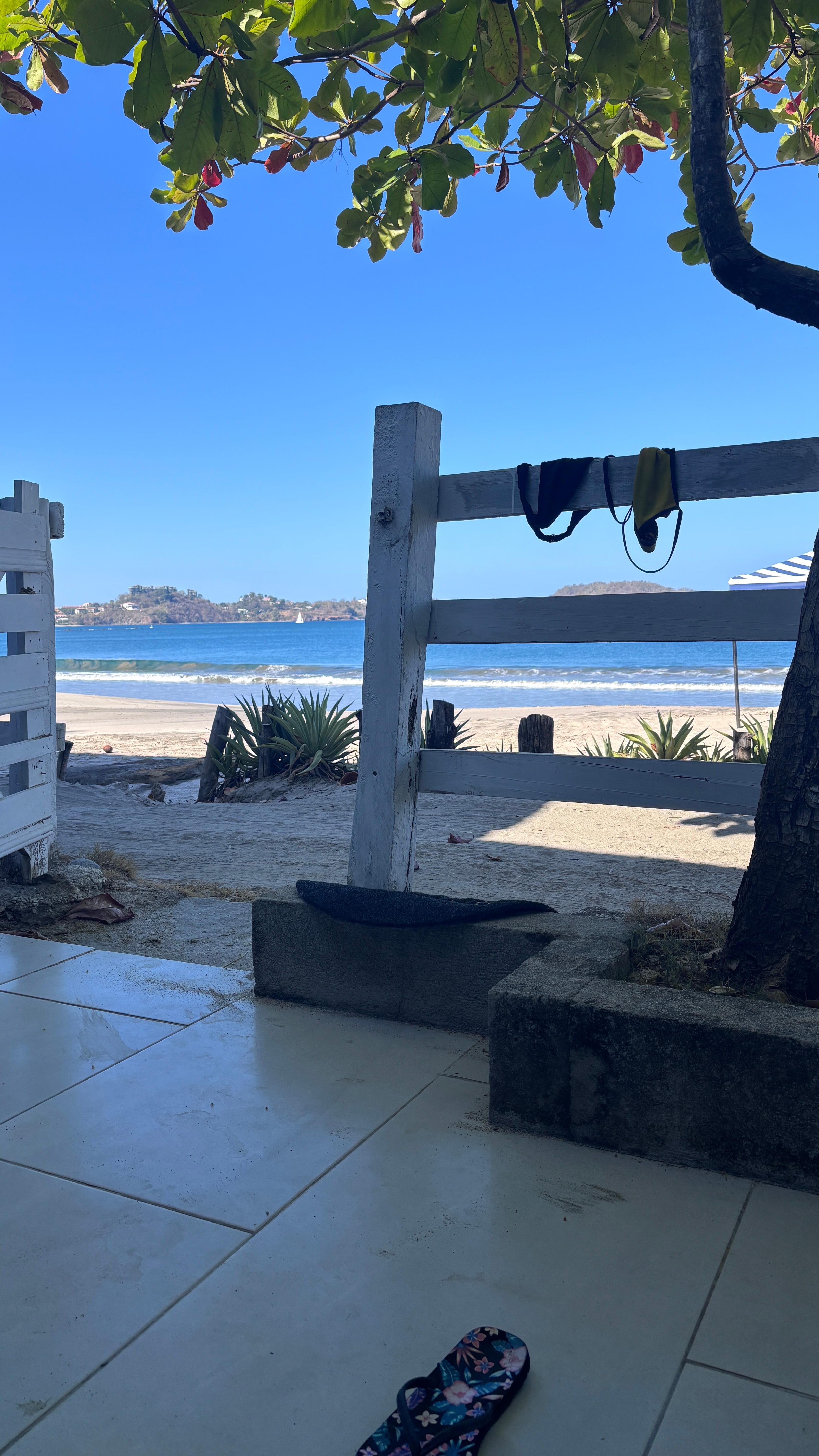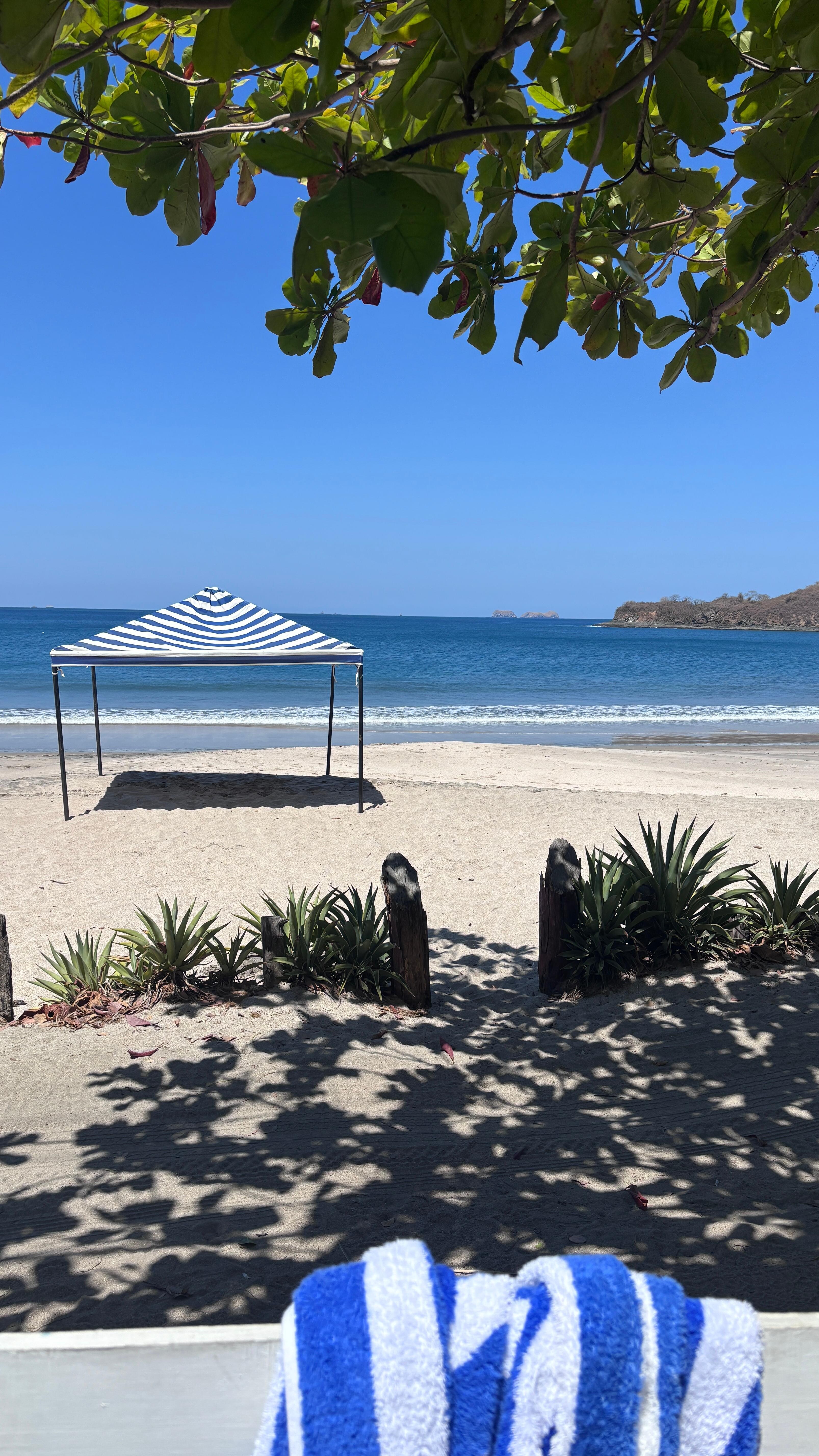 The space was simple but effective. Around 12' x 20' a 5' x 12' bathroom & "closet" which included a large shower. Water pressure was weak, but hot water was quite warm. The kitchenette was good enough. Hot plates, microwave and some silverware, dishes and pans. Not suitable for cooking full meals but enough for making a simple meal or reheating. The bed was quite comfortable, on the firm side. But we didn't select this stay for the interior amenities... The patio was very nice, leading immediately out onto the beach. We had a portable cabana reserved for us, comfortable beach lounge chairs. The beach was lightly populated during the busy times, nearly private in the early mornings. The sun rose on the inland side, giving the patio shade in the early morning. These early morning hours the beach had few to no visitors. mid morning some people started showing up, mostly couples or small families. Still far from crowded. The busiest time was the hour around Sunset. Even then, 80 people on a 2,500' beach. And most of them at one end where the road leads in. We were told there are only 3 houses on the beach, and there are literally 3 houses on the beach. There is a "road" between the patio and the sand, but this is not a through road and is barely used. We had a rental car, but there is a variety of food options within an 8-15 minute walk. We walked several nights after dark and felt completely safe doing so. Our only complaint, there are a lot of ants outside.