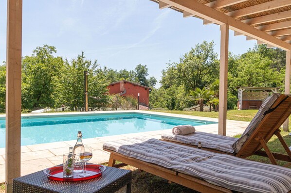 Sí, hay piscina en la propiedad.