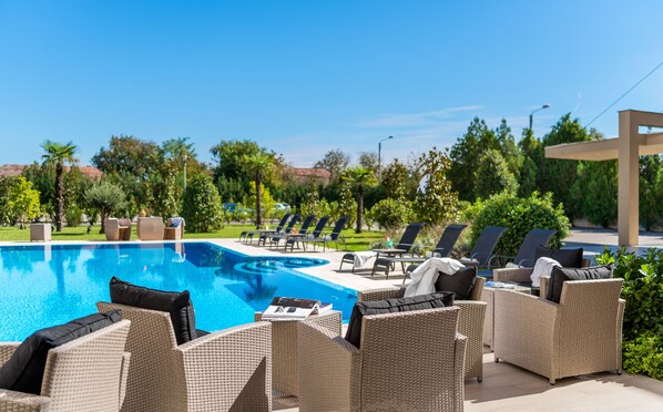 La piscina de temporada abre de abril a noviembre.