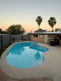 Sí, hay piscina en la propiedad.