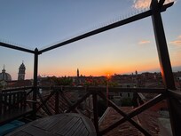 Awesome terrace! We loved this place! The owners, Sergio and Flavia's apartment is directly below this so their access and response was great. This is their attic, converted into an apartment. It is very nicely done. Since it is an attic the head room is low in some places. The main bedroom is directly off the kitchen, and you must climb into the bed. Also, it has no bedroom door. The living area is great, and it does have a fold out couch. It is a fourth-floor walkup then there are two more flights of stairs to the terrace inside the apartment. The view is amazing! The location is great - it is in a very quiet, local area in the Castello neighborhood, less than 10 min walk to St. Mark's square. Would definitely recommend it.