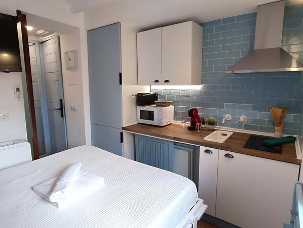 Cocinas con microondas, tostadoras y utensilios de cocina