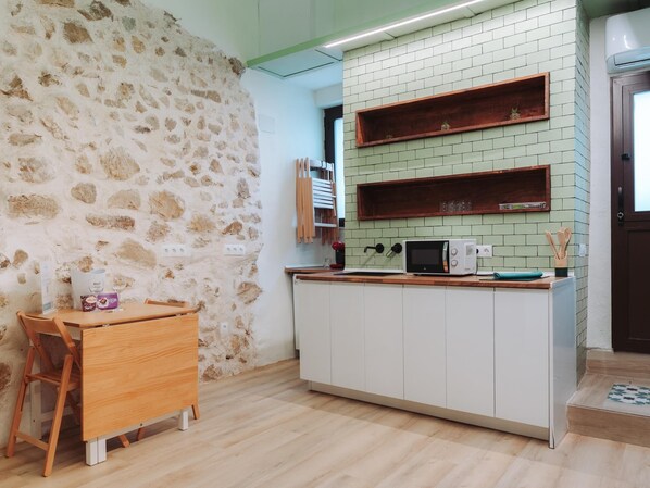 Cocinas con microondas, tostadoras y utensilios de cocina