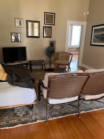 I really wanted to love this property. First, if you are renting this place based on the online pictures you will be disappointed. I don’t know how old the pictures are but they don’t reflect the furniture in the house besides a couple of pieces. All of the furniture is deeply uncomfortable especially the bed. We had to buy a blow up mattress to sleep on because the mattress in the bedroom is awful and we would wake up in pain. Second, the property in general needs some love. A good paint job and a deep cleaning would go a long way. The shower head is the pits and does not match the pictures. The good stuff - the kitchen is well stocked with cooking supplies (not food), plenty of counter space, and is in a quiet neighborhood off the beaten path. The Main Street of town is 1 block away and the people and shops are lovely.