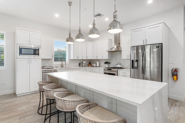 We live here on Grand Cayman and chose Coconut 1 at Boggy Sands Club for our multi generational 10 person gathering. The unit was gorgeous, modern, spacious, immaculate and had everything we needed for our 4 generations of family ages 14 months to 86 years. Easy parking right in front of first floor unit was perfect for strollers and great grandma. The kitchen had every single pot, pan and utensil we needed to cook and eat together. Showers had powerful water pressure and more than enough towels and hot water for everyone. Beds were beyond comfortable. The public spaces were enormous and the sofas were the most relaxing place to hang out and enjoy each other. An easy stroll to the private beach (we drove great grandma to the beach right around the corner), where Madhav had loungers, chairs, floats, kayaks, sand toys, paddle boards and more. He even brought over a kiddie pool and filled it with fresh water for the littlest ones! Alfanso responded immediately when we had a minor issue. He also brought us a mini playground for the garden behind the unit. Foster’s market just steps away had everything we needed. We love this north section of 7 Mile Beach in West Bay. Private and quiet, but easy driving to any and all of the 7 Mile Beach action including restaurants, workouts and activities. We have cars on island, but if we didn’t, we would have definitely rented a couple. We cannot recommend Boggy Sands more. We will absolutely stay again. Thank you Alfanso, Morne and team!