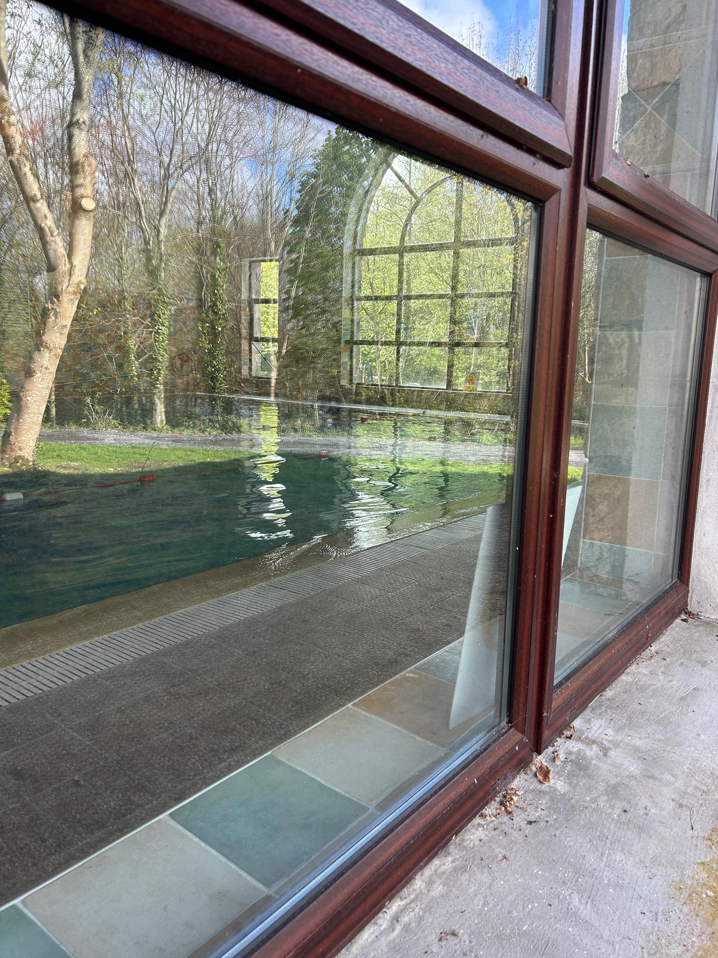 The Staff were nice. The breakfasts were excellent! The room was super spacious. Water, coffee, tea and cookie snacks always offered in room. King size bed was good. Nice property on a lakeside view. Nice bar/lounge area. Large and many lounging areas. Spa requires swim caps so bring one! They do sell them €3.50. Hot Tub was in repair stage. Did not use the spa or pool as no time and do not like swim caps…. Property is huge with lots a grass and trees. A 15 minute walk town area and 10 minute walk to Quay area. Pleasant quiet location.