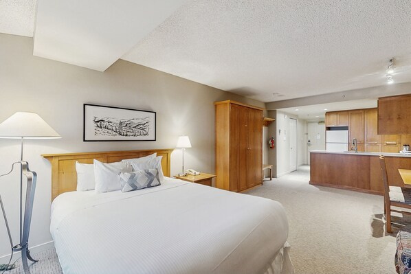 Relaxing 4th-floor studio with ski/mountain views, gym, fireplace, washer/dryer