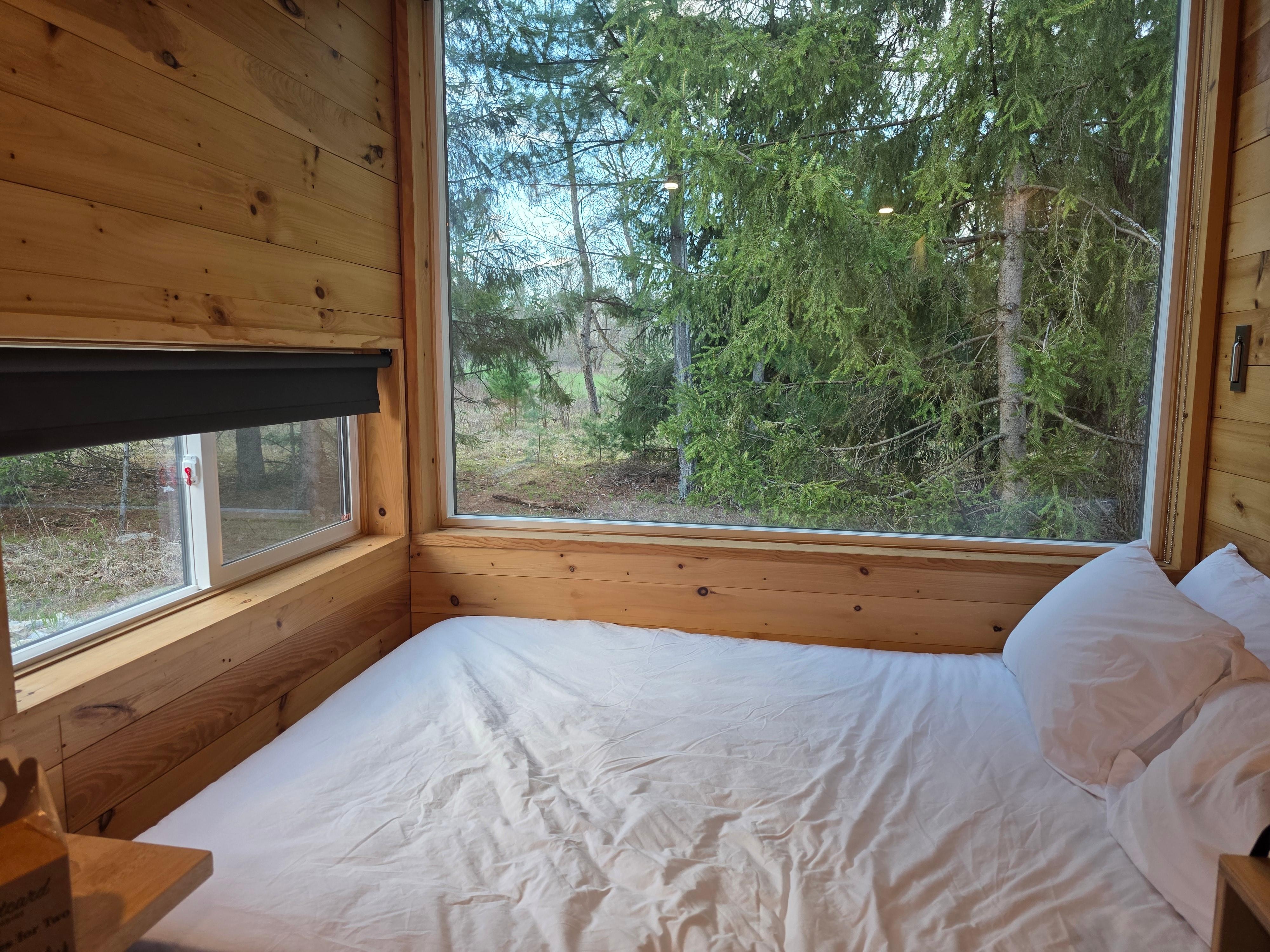 I loved the windows and the mini speaker in the kitchen really set the vibes when my boyfriend and I discovered it and the pillows were comfy as well the bed. But defiantly going back when the weather gets warmer. A very good getaway with your significant other!